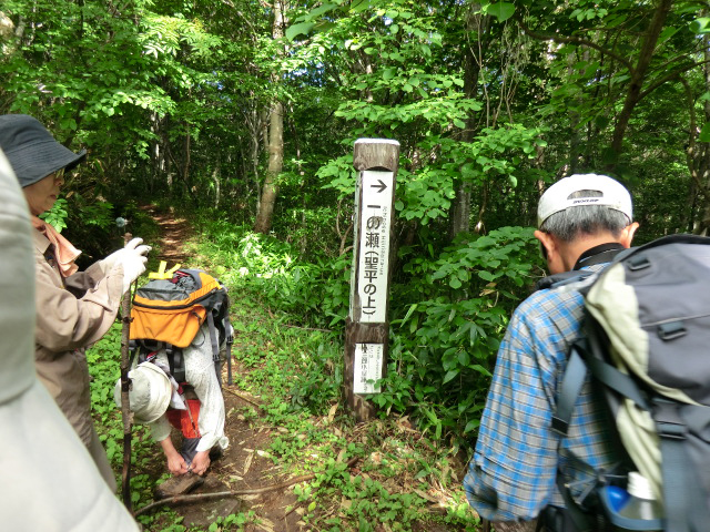 ![]() 岩菅山登山の証拠写真を残すtために登山口で記念撮影 |