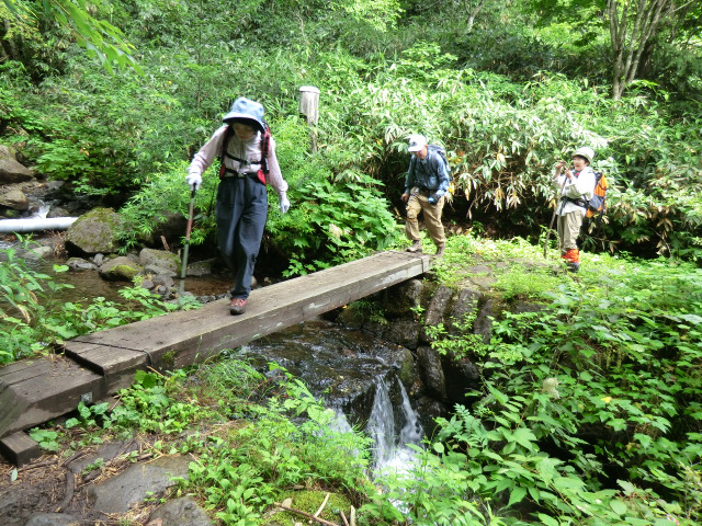 ![]() 小さい沢の橋を渡る |