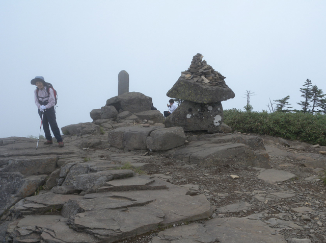![]() 山頂を後にしてノッキリまで戻ると霧が晴れて頂上方面が臨めた