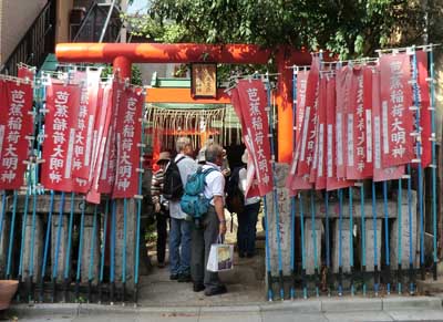 嘗て芭蕉が住んだ芭蕉庵は家々に囲まれた芭蕉稲荷大明神になっていた。
