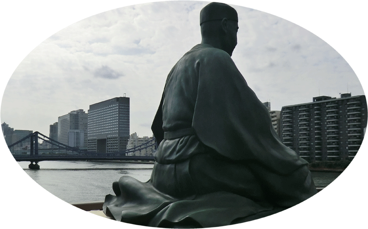 深川の隅田川畔に建つ芭蕉像