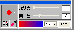 | マーカーは透明感のある線を描く時に使います。仕上に輪郭の線を描くのに適しています。マーカーのオプション指定は筆の場合と似ていますので、それに準じて考えてください。オプション・ウィンドウでは透明度の指定ができます。透明度は数値が上がる程薄い色で塗りつけることが出来ます。